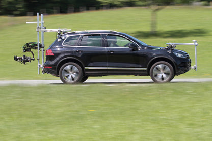 Mounting the Hybris shock absorber is as simple as clamping it on to a standard speed rail. You build a rig onto your vehicle, using standard grip components like speed rail and clamps. Then you simply clamp your Hybris on there, with two or four single clamps at the back of the shock absorber.