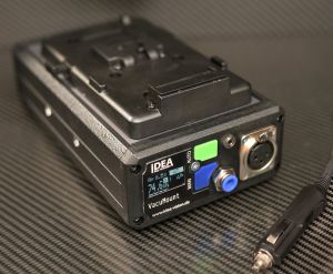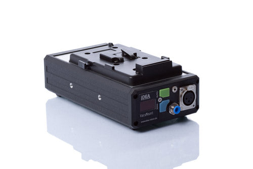 The vacuum pump system can be connected from 11V to 30V DV , directly from a car (12V), or any standard V-Mount Battery or D-TAP.